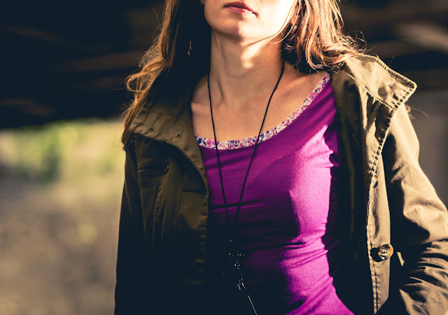Bon finalement je l'aime bien ce top, je pense bien que cette couleur est ma couleur favorite et j'aime bien casser le côté fifille avec un look plus rock et le décor est pour le coup approprié!