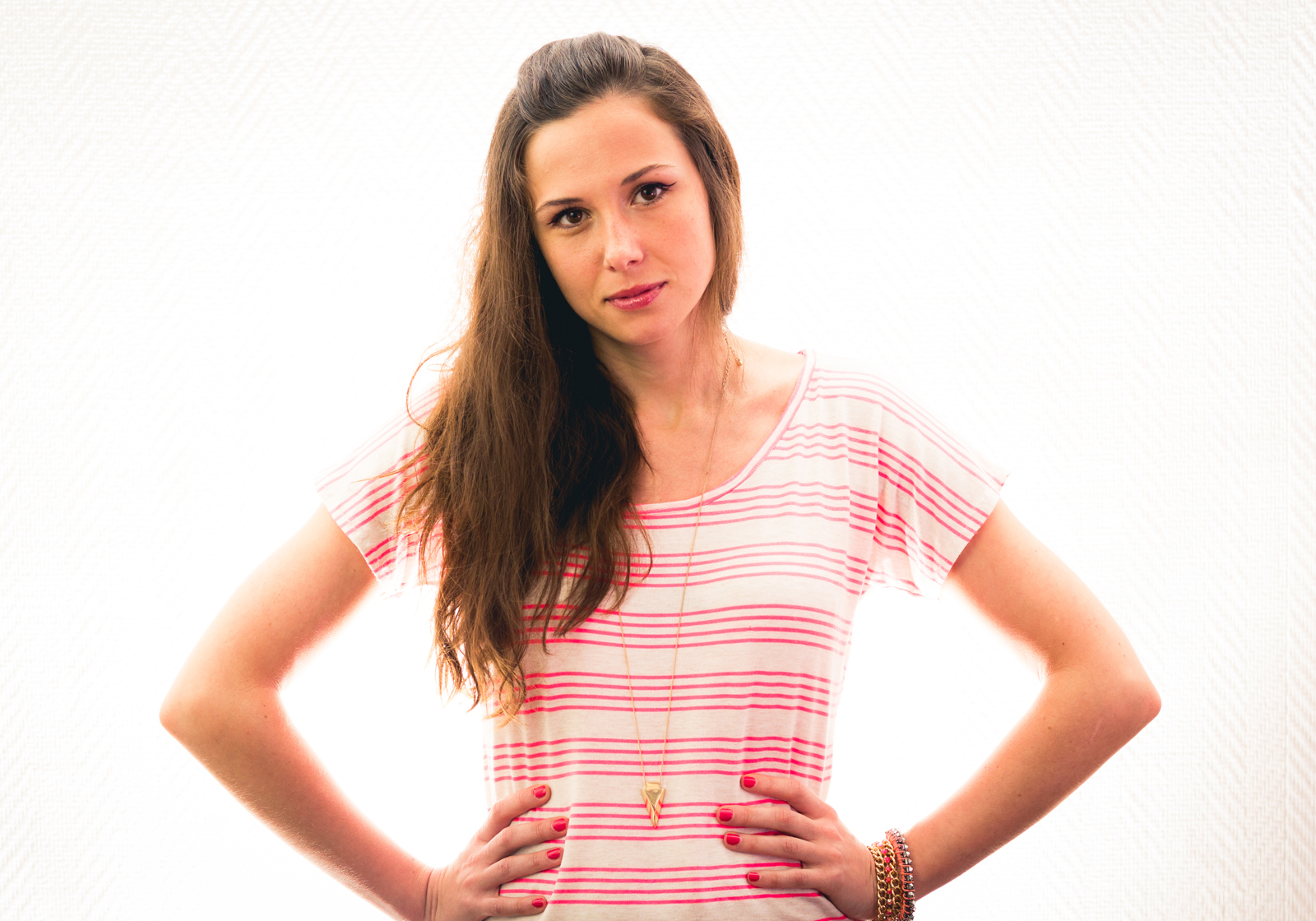 J'aime les t-shirts comme ca, et aussi l'air simple de tes photos! L'ensemble es jolie, surtout les bijoux!