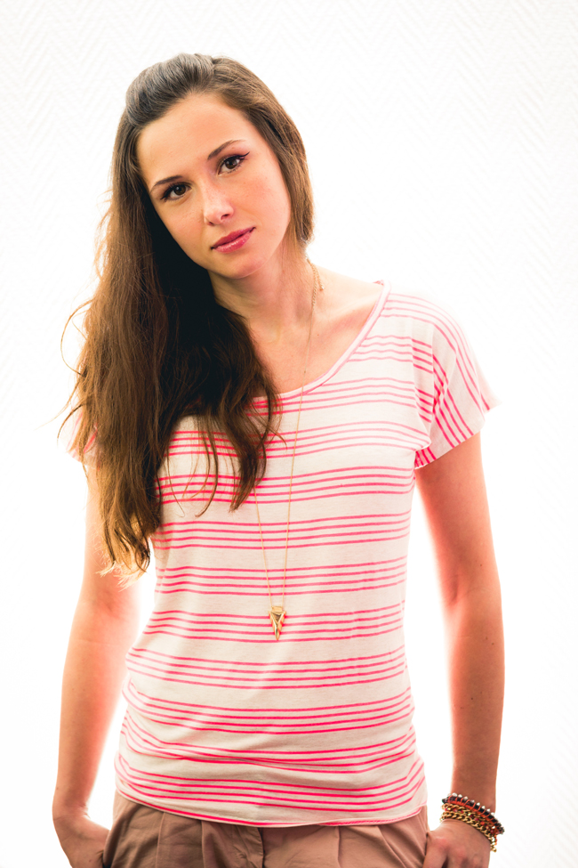 J'ai repris le patron fait maison de ma marinière auquel j'ai ôté les manches, un t-shirt simple et léger dans un tissu tendance et flashy dégoté aux coupons St Pierre. J'en ai 3mètres et j'ai plein d'idées, vous allez donc prochainement le revoir! J'ai fait du coup dans le total rose pour le look, ça met la pêche!
