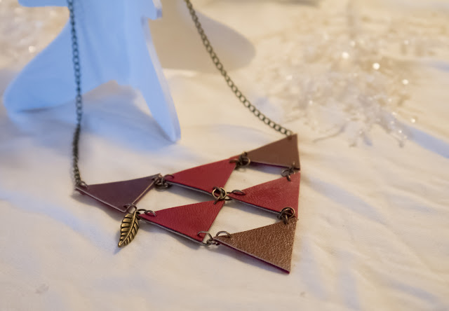 -Un collier triangle réversible avec du faux cuir et une petite feuille pour un esprit bohème.