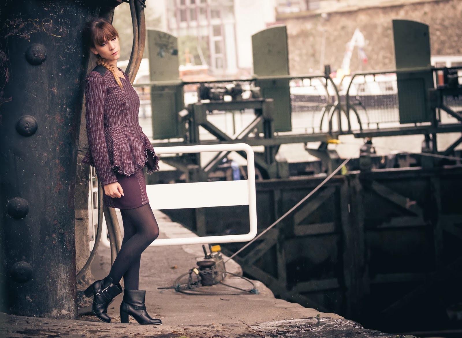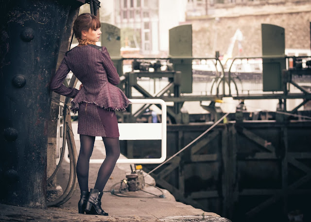 Voici donc la deuxième tenue que j'ai entièrement réalisée pour mon projet "Rock my Vintage". Il s'agit d'un tailleur revisité en tweed à chevron aubergine (j'adore cette couleur!!!)