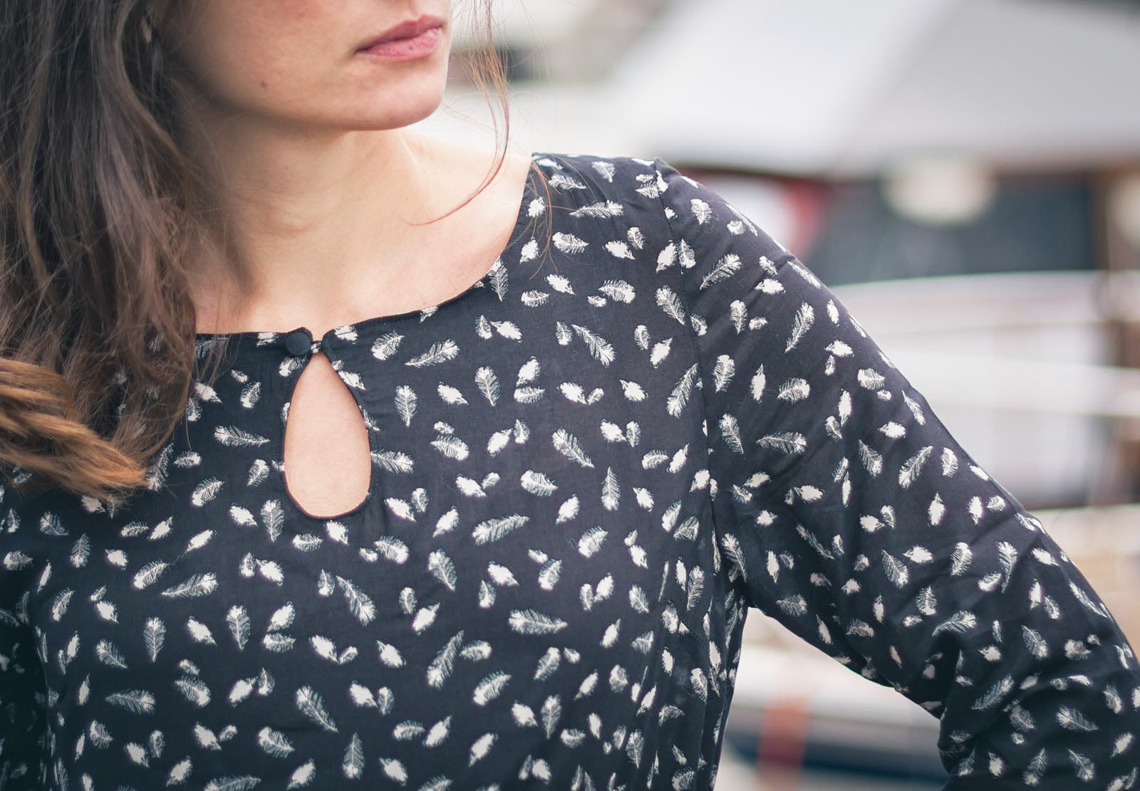 Encore des plumes! Et oui, après avoir cousu cette petite blouse dans ce superbe tissu à plumes, déniché aux Coupons St Pierre pour une bouchée de pain, il me tardait de coudre une robe dans mon coupon noir.